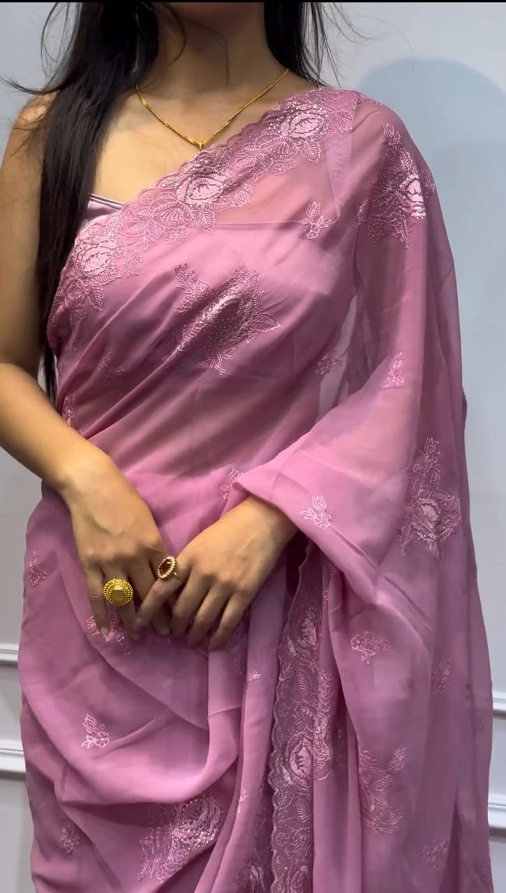 Chinigura Georgette Sequences and Embroidery Saree