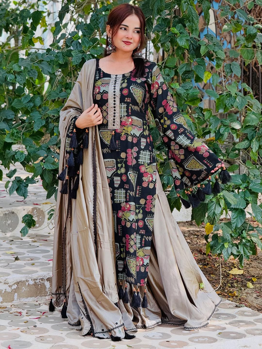 ডিজিটাল প্রিন্টের লেস ওয়ার্ক ডিজাইনের রেডিমেড থ্রি পিস